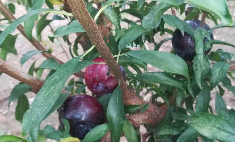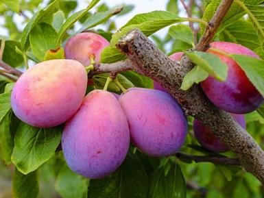 法蘭西西梅 ?法蘭西:該品種適應性廣,抗逆性強,樹體中庸,多以短枝結果為主。果實卵圓形,果柄部有乳頭狀突起,果皮成熟時深紫紅色,果肉淡黃色,肉硬核小味甜,通常單果重25-50g,平均40g左右
